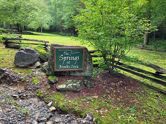 Picturesque 2.76 acres with end of the road privacy, small pond and boarders USFS on 2 sides. Flat cleared homesite & driveway in place, surrounded by mature hardwood trees. Under ground electric. The Springs at Brooks Cove is a well established subdivision with restrictions to protect your investment. Forgot something from town? There is a new DG Market 3 miles away. Beautiful area to soak up nature!