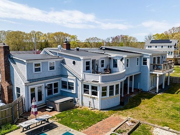 A rare gem in private Mattapoisett beach community! This must-see home in peaceful Harbor Beach boasts admittance to 2 private neighborhood beaches, a boat ramp, basketball court and seasonal swimming raft. The fenced in backyard provides ample room for entertaining. An in-ground pool with outdoor half bath and shower maximizes outdoor living. Enjoy water views from both 1st and 2nd floors. This home’s interior boasts both gas and wood burning fireplaces, and chef’s kitchen, butler’s pantry, and sun-filled breakfast nook. First floor bedroom and half bath are ideal for guests, with additional room for office or flex space. The second-floor primary suite includes a private bath, spacious balcony with water views. Washer/dryer hookups on both floors. Two additional bedrooms and a bonus room-round out the second floor. Above the garage discover a 2-bedroom, 2 bath apartment, perfect as an in-law suite or rental unit. Private entrance and working elevator provide accessibility for all.