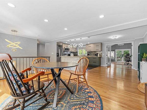 This beautifully remodeled home offers a spacious open floor plan and thoughtful upgrades throughout. Features include updated wiring and plumbing, and a newer water heater. All windows have been replaced—brand new on the first floor and newer on the second. The chef’s kitchen is a true showstopper, featuring top-of-the-line stainless steel appliances (Miele & Samsung), granite countertops, a tiled backsplash, pendant and recessed lighting, and a large center island with additional cabinetry. The dining and living rooms are conveniently located just off the kitchen—perfect for entertaining. The enormous primary suite is a private retreat with cathedral ceilings, an electric fireplace, two custom closets, a luxurious full bath, and its own balcony. A separate office is also located off the master, ideal for remote work. Additional highlights include ample closet space with custom built-ins, a pull-down attic for extra storage, and an oversized 2-car garage with brand-new flooring.