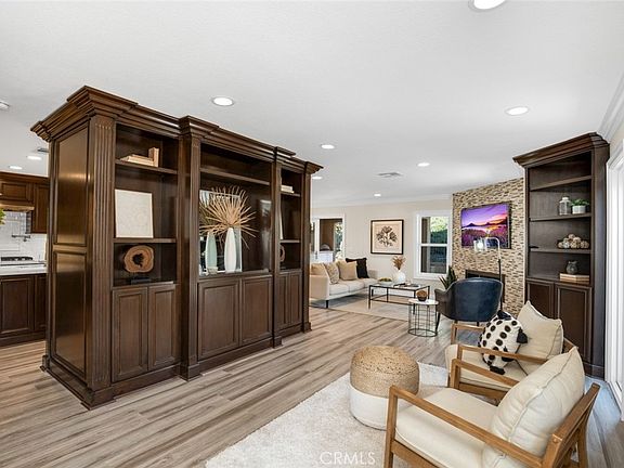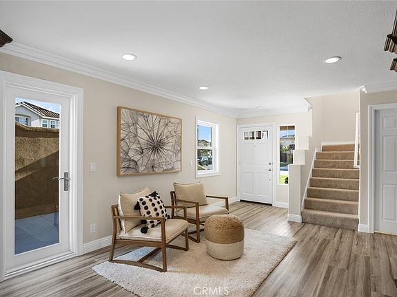 Discover your Californian dream in the coveted Foothill Ranch community! This upgraded home located on a spacious corner lot with just one adjoining neighbor, providing privacy and tranquility.This 4-bedroom gem features designer touches throughout, with a gourmet kitchen as the centerpiece for entertainers. Luxurious elements include expansive quartz countertops, an oversized center island with a deep stainless-steel sink, and a newly integrated built-in dishwasher. Remodeled in 2018, the kitchen boasts hand-stained cabinets with slow-close hinges, soft-closing slides on drawers, & a custom Mixer/blender cabinet. Additional highlights comprise a custom coffee bar with a built-in television, a wine fridge, dual trash can drawers, oversized lazy susan cabinets, and custom crown molding. The living area, adorned with a striking gas fireplace, seamlessly connects to the California room through Milgard double panel swing doors. The backyard oasis features a 350 sq ft California Living Space, wired for two large flat-screen TVs, a gas log fireplace, a 6-foot serving bar with under-deck cabinets, and LED lights with dimmers. Ideal for movie nights, game days, or family barbecues, this space is complemented by a sunlit left side yard-perfect for a dog run or vegetable garden. A stainless-steel KitchenAid barbecue grill completes the year-round indoor/outdoor experience. Upstairs, a loft with high ceilings offers flexibility as a home theater, game room, study area, or potential fifth bedroom. The primary suite accommodates a king-size bed and furnishings, providing a tranquil retreat. A bonus enclosed private office in the garage caters to remote work. Nestled in the serene hills of Foothill Ranch with beautiful views, enjoy low HOA fees, neighborhood parks, playgrounds, sport courts, hiking and biking trails offering endless occasions to enjoy the outdoors. Foothill Ranch Towne Center offers convenient shopping, dining, theaters and entertainment, and you’re just a short, scenic drive to the Irvine Spectrum, John Wayne Airport and the beaches of Orange County. With upgrades including fresh paint and modern fixtures, seize the opportunity to move in and embrace the Foothill Ranch lifestyle-a chance to own a piece of Californian paradise!