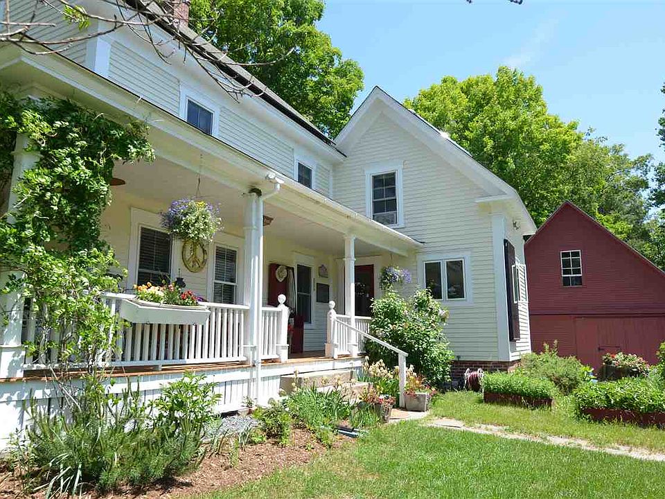 Relax in your rocking chair on the wrap around farmers porch of this traditional 3 bedroom 3 bath "New Englander" and watch the world go by. Set on 4.4 acres in the historic town of Bradford, NH, the level property overlooks a lovely natural marshland where the views and wildlife will exceed your expectations. Currently used as as a popular and successful antique shop "Old Road Antiques", But the use is limitless in this location. The updated kitchen with stainless appliances is the centerpiece of this home and features a solar heater. The formal dining room with authentic antique "built ins" is steps away and shares space with adjacent office. The cozy living room with wood burning stove opens onto a wonderful deck with hot tub and sensational views of the countryside. The second floor includes a master suite with private stairway, sitting room, bath and laundry. The front staircase accesses the two other bedrooms. The 3 story barn is a "pickers" dream, with gorgeous antique beams and levels. The basement "shop" has easy access and great flow and includes an LP Hearthstone Stove. 18 photovoltaic solar panels keep electric costs to a minimum and a Thermal Solar System Water Heater keeps fuel costs at bay. Your next adventure awaits you at Old Sutton Road.LP Hearthstone stove in shop,Solar heater in kitchen,Thermal Solar System Water Heater