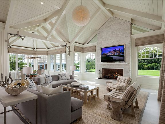 Set on 4 +/- level, landscaped acres in the heart of the luxury estate community of Olde Towne, sits "Twin Peaks", a pristine country house complete with pool, pool house and tennis court occupying three levels of sumptuous detail. Refreshing, modern appointments and state-of-the-art amenities dovetail Kean Development's award winning construction. The Main House: At approximately 15,500 square feet, comprised of 8 full en suite Bedrooms of which 2 are master suites, 9 full and 3 half Baths, the 2nd Floor Master Suite with his and hers Baths, three full Staircases, Elevator, 8 Fireplaces, full professional Chef and traditional Kitchens, Great Room, Breakfast Room, Media Room, Library, extensive Loggia and expansive Lower Level with Theatre, Gym, professional 2-lane Bowling Alley and Entertainment Lounge with full Bar and Billiards. The Cottage: features a full Kitchen, Living Room/Dining Room and 2 Bedrooms with en suite Baths; perfect as a guest or n anny suite. The Pool House: features a Great Room, Lounge, Kitchenette, 2 Full Bath and Bedroom/Changing Rooms. A wonderful canopy veils the Pool House terrace, providing shade for dining or relaxation. The Grounds: house decorative, automated security gates that open to reveal a manicured, meticulous landscape, bordered by a classic Hamptons' privet hedge. A 60' x 34' custom Gunite swimming pool with a striking negative edge element and an oversized spa sit at edge of the Pool House terrace. Submerged sun lounges cool sunbathers in the pool's novel beach end. Ample terrace entertaining spaces are set in and amongst vivid garden beds and expansive, open lawn area. A convenient BBQ patio, gas fire pit and sunken Deco turf tennis court complete with decorative lattice fencing and a sunken, pergola covered viewing area headline the list of Twin Peak's outdoor amenities. There is ample space for a golf hole to complement the rooftop putting green. A verdant, treed periphery maintains privacy and well as "Gold Coast" beauty throughout the Olde Towne estate.