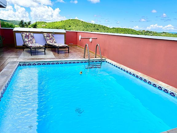 Show Stopper! Sparkling Gem. Immaculate, Pristine & Private. This is your dream villa. Matching 2 bedroom, 2 bath ensuite bedrooms, overlooking the panoramic views of Green Cay and the memorizing Caribbean Sea. Dreamy new kitchen with center isle, granite solid surface counter top and SS appliances. So many bells and whistles, solar, AC, dipping pool, magazine worthy exterior seating, generator, shutters, storage galore. Adorable apartment with its own private, shaded deck. and parking. Move in ready. Fully furnished and equipped. See amenities list in Supplement Remarks. 9 Parara Amenities