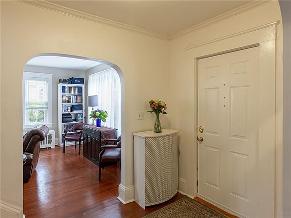 Elegant Center Hall Colonial located in desirable Oak Hill neighborhood. The first level offers a wide foyer, a wood-burning fireplace living room, a formal dining room with crown moulding and an original built-in hutch, a light filled sun-room with Anderson sliders leading to backyard patio and has a perfect space for a mudroom area, an updated half bath, and a versatile kitchen. This home has been meticulously cared for and well maintained. The center staircase leads you to the master bedroom with generous closet space, 3 additional bedrooms, a renovated full marble floor bathroom and an open hallway that has a perfect area to utilize as an office space. The second level has central air to help cool down those warm nights. This level leads you to the attic which is possible for expansion. The fenced yard has two organic gardening plots, two fruit bearing blueberry bushes and one fruit bearing dwarf elderberry tree, and a concrete patio that completes this backyard. Other notable mentions are the hardwood floors with reverse boarders throughout, the new roof that was completely replaced in 2017, new replaced Harvey vinyl windows in 2018, and freshly painted interior. Some of the reasons why this neighborhood is so sought after is the easy walking distance to Hope St, East Side of Providence's Blackstone Blvd., the Farmer's Market at Lippett Park, community centers, parks, and a one-hour drive to Boston.
