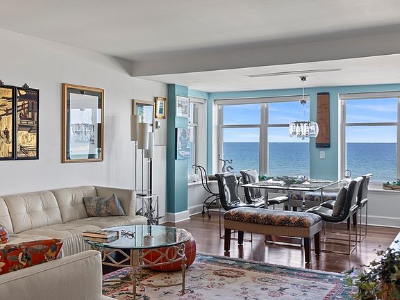 Breathtaking 360° ocean views from this stunning 2BR, 2BA condo at Horizons at Paragon Park. Enjoy high-end design, custom finishes, and water views from every room. The gourmet kitchen features a Fisher & Paykel double-drawer dishwasher, Liebherr fridge, and Brazilian Cherry cabinets. The spacious primary suite offers double closets, a dressing area, and a luxurious Italian marble shower. Second bedroom with full bath is ideal for guests or a home office. Great layout with both bedrooms separated for privacy. Bump out in living room offers perfect nook to sit and enjoy the view. Heat included in condo fee. Includes in-unit laundry, storage, and deeded parking. Newer windows and heating system ensure energy efficiency. Resort-style amenities include gated parking, fitness center with sauna, clubhouse, and inground pool with grill area. Located steps from Nantasket Beach, near the bus line and minutes to the commuter rail. A rare opportunity to own a piece of coastal paradise!