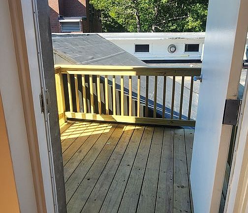 Beautiful newly constructed 2nd floor 2 bedroom apartment in former hospital in Bath. This apartment features custom kitchen with stainless steel appliances; beautifully restored hardwood floors; in-unit laundry, a spacious mudroom/entryway and a private rooftop deck.