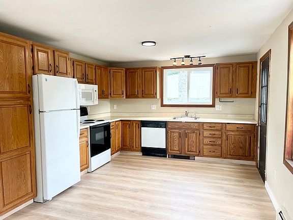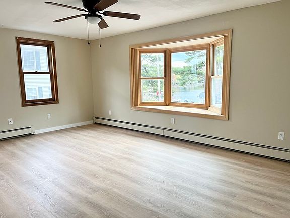 Discover the epitome of Lakeside living with this fantastic 4-bedroom, 2-bathroom home priced at $495,000. Connected to town water, sewer, and natural gas, with a 2-car garage under for convenience. This home offers picturesque water views. Flexible Layout: the main floor features an open concept living/dining/kitchen, a full bath with double vanity, and two bedrooms, one with direct access to the deck The second floor also has two bedrooms with skylights, and a versatile space that could serve as an office, reading nook, or homework area. Smaller full bath on this floor, with small tub/shower combo. Host gatherings or savor quiet moments on the extra-large, wraparound deck with stunning lake views. Recent interior upgrades include fresh paint, flooring, hot water tank, and light fixtures. Public access to the lake literally 30 steps across the street, with just a few steps to launch your canoe, kayak, or paddle board. Come transform this property into your Lakeside oasis.