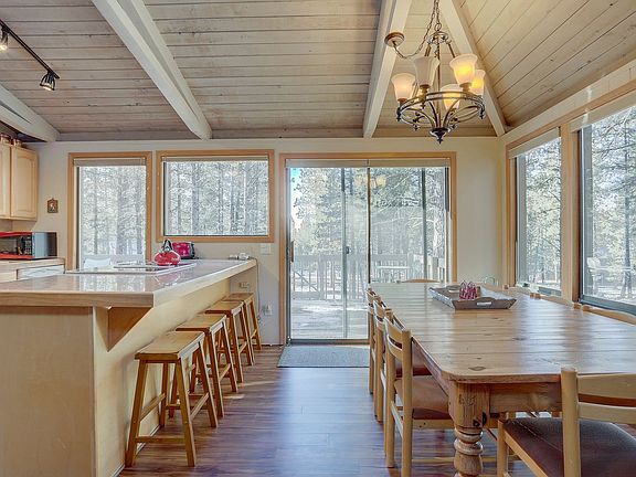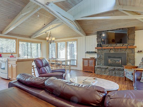 This fun and family-friendly home is perfectly set up for a fabulous Sunriver vacation. Light and bright, it offers ample space for the entire family to spend time together or separately. Located at 11 Pine Mountain Lane, this 2-level home features 4 bedrooms and 4 bathrooms. Upstairs, you'll find a King Master Suite, a second King Master Suite, and a third bedroom with a King Bed and a bathroom in the hall. The living room, dining room, and kitchen are also located upstairs. Downstairs, there's a basement with a fourth bedroom featuring a double twin bunk and an additional twin bed, along with another full bathroom, a family room with a wet bar and flat-screen TV, and a separate game room with a foosball table. The home is equipped with new TVs in each room and DVD players. A gas fireplace in the living room adds warmth, and the newer, comfortable furniture ensures relaxation. The home also includes a garage for your convenience. A private hot tub and deck with BBQ and comfortable patio furniture allow you to enjoy the outdoors. For families with small children, a portable crib and high chair are available. Pets are allowed with prior approval and a $15 per night pet fee. Pets are not permitted on the bedding or furniture and must never be left at the home alone unless they are crated or kenneled. Located just a short 0.25-mile walk to the SHARC or Fort Rock Park, this home is close to tennis courts, golf, and the Sunriver Village Mall, where you'll find shopping, entertainment, and restaurants. There are 5 adult and 2 youth bikes available to explore the miles of paved bike trails throughout Sunriver. Please bring your own helmets. Fort Rock Park is just a hop, skip, and a jump away from the home. This home has air conditioning and sleeps 10. Pets are allowed only with prior approval and a $15 per night pet fee. Pets are not permitted on the bedding or furniture and must never be left at the home alone unless they are crated or kenneled. A separate rental agreement will need to be electronically signed before your stay.