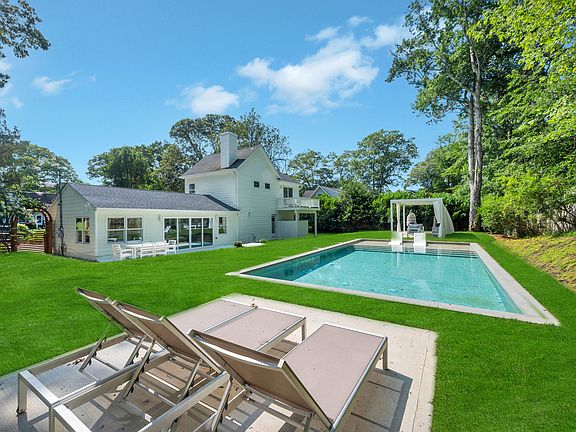 Available: Short-term and Fully Furnished Welcome to 9 Pine Tree Road-a newly reimagined Hamptons retreat set within one of Southampton North's most coveted waterfront communities, just moments from a private, residents-only beach. This exceptional four-bedroom, two-and-a-half-bath home has been fully transformed through a brand-new designer renovation, offering a refined blend of modern style, coastal charm, and effortless livability. The open-concept main level is bright and inviting, anchored by a sun-splashed kitchen and dining area where custom built-in bench seating wraps beneath oversized picture windows-perfectly framing the professionally landscaped backyard. Designed with both relaxation and entertaining in mind, the home transitions seamlessly to the outdoors, where a brand-new pool, elegant cabana, and fresh lush landscaping create a private resort-like oasis. Bedrooms are thoughtfully distributed across two levels, providing the ideal balance of privacy and connection for guests. Every detail-down to the fixtures, finishes, and material palette-has been carefully selected to deliver a crisp, modern Hamptons aesthetic. Set in a quiet, upscale neighborhood with easy access to the water, this turnkey residence offers the best of beachside living. Whether you're seeking a year-round home or the ultimate summer escape, 9 Pine Tree Road is a rare opportunity to enjoy the Hamptons at its finest.