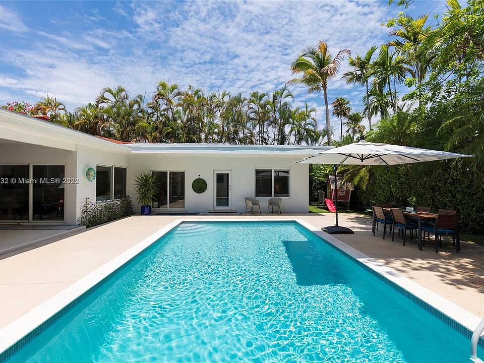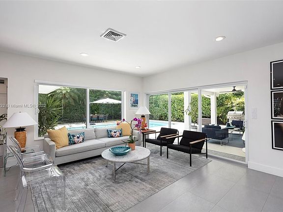 Beautiful Oasis Situated in the Coconut Grove, Bay Heights Community. This 4/3 Residence boasts high ceilings, tile and wood floors, a working modern fireplace, and flowing open living spaces. Open kitchen with quartz countertop, seating overlooking family room. All bedrooms are ample and spacious. Guest suite separated from other rooms offers privacy and would also make a great office or play area. Bathrooms are Tastefully renovated In a clean and neutral color palette, with spacious modern glass encased shower enclosure, and dual vanity. Enjoy views of the pool from any room in the house. Poolside is an oasis, with lush tropical foliage creating a private ambiance, including an outdoor kitchen. This is the perfect home for hosting and entertaining whether inside or outside.