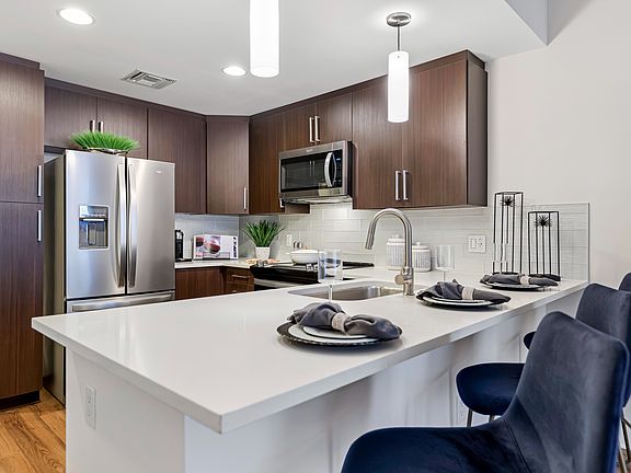 The Mark at Cityscape offers more than one package of apartment finishes. When reviewing the details of apartment home availability using the button above, select "View" under the “Amenities" column to display which package applies to each available home. Classic: An apartment that feels like being back home. GE® stainless steel appliances, espresso cabinets, and quartz countertops. Featuring vinyl plank flooring in kitchens and living rooms and plush carpeting in bedroom(s). Gold Renovation: Lightly refreshed, this apartment features espresso cabinets, upgraded Whirlpool® stainless steel appliances, quartz countertops, and designer style tile backsplashes in kitchen. Also featuring vinyl plank flooring throughout entire residence, USB charging outlets, and Nest® thermostats. Click here for a full-screen tour.