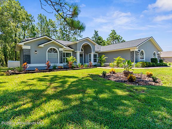 MOVE IN READY! Free one year HOME WARRANTY! 3 bedroom + LARGE additional room! Tucked away at the end of a peaceful cul-de-sac and backing up to a tranquil wooded preserve, this beautifully updated POOL home offers privacy, style, and seamless indoor-outdoor living. With a newer roof (2021) and thoughtful upgrades throughout, this residence is truly move-in ready. A decorative paver driveway leads to a side-entry two-car garage and double front doors beneath a charming covered entry. When you walk into the home you will discover the main living areas filled with natural light, creating a bright and airy atmosphere. The desirable floor plan includes a spacious family room, formal dining area, and a separate living room/kitchen/breakfast nook comboâ€''perfect for both daily living and entertaining. The chef's kitchen is a true showstopper, featuring custom white shaker cabinetry, gleaming quartz countertops, stainless steel appliances, a breakfast bar, and stylish wood flooring throughout the main spaces. French doors off the breakfast nook open to a private screened-in lanai with a heated pool and spa, paver decking, and a pass-through window to the kitchenâ€''your personal backyard oasis for year-round entertaining. Enjoy cool evenings by the outdoor fireplace on the covered back porch or take a stroll down the winding path through the backyard, past the fenced dog run, to a serene retreat nestled among the trees. Expansive primary suite, featuring cathedral ceilings, a sliding barn door to a spa-inspired ensuite bath with dual vanities, soaking tub, walk-in shower, and large walk-in closet. Two additional guest bedrooms and a versatile flex spaceâ€''ideal for a home office, gym, media room, or fourth bedroomâ€''complete the layout. Just a few miles to the Suncoast Parkway for an easy commute to Tampa, and close to some of Florida's best natural attractions: Crystal River, where you can see manatees, paddle through crystal clear spring fed waters, visit shops and local restaurants downtown. Homosassa Springs Wildlife State Park for enjoying wildlife up close, and Fort Island Gulf Beach, if you're looking for a peaceful, laid-back, and perfect place to catch a sunset over the Gulf. This is more than a homeâ€''it's a lifestyle of comfort, tranquility, and everyday luxury
