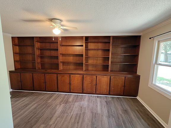 Abundance of natural lightCorner lotPrime corner lotCustom wood built-in bookshelvesExtra privacy