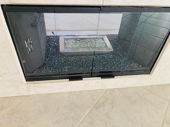 Dual-sided fireplaceFront courtyardThree unique sitting areasWall of windowsSelf-closing drawers and cabinetsMatching tile flooringStainless-steel appliances