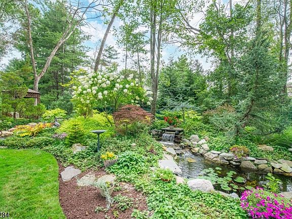 Welcome to this stunning Colonial located in a highly desirable neighborhood & set on a beautifully professionally landscaped lot,this home boasts a tranquil oasis in the backyard,featuring a serene pond,soothing waterfalls & a two-tiered deck perfect for entertaining or relaxation.A bright glass SunRm completes the outdoor paradise,providing the ideal space to enjoy the natural beauty year-round.As you enter the 1st floor, you're greeted by a center foyer & spacious formal living & dining rooms,perfect for both casual & formal gatherings.The FamRm is accented w/a fireplace & offers easy access through a slider to the deck,creating a seamless flow between the interior & exterior.The large eat-in kitchen is a chef's dream w/center island,greatcounter space & a handy pantry.A convenient 5th BedRm/office completes the 1st floor,offering flexibility for your lifestyle.On the 2nd floor,a primary suite provides a private retreat,featuring a full bath,spacious walk-in closet & balcony overlooking the rear yard a perfect spot to unwind.3 other generously sized BedRms offer ample space for everyone!The entire home is light & bright,thanks to skylights that flood the rooms w/natural light,creating an inviting atmosphere!A FinBSMNT adds more living space w/full bath, storage & Jacuzzi.This home is the perfect blend of style,comfort & functionality,offering everything you need for modern living in a beautiful,serene setting.Don't miss out on the opportunity to make this your dream home!