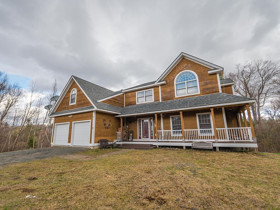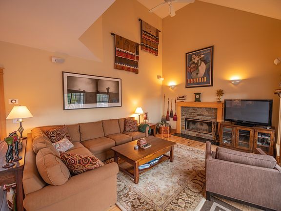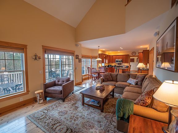 Beautiful private contemporary farmhouse with direct snowmobile trail access, an adjacent beaver pond for wildlife, and nearby access to Mount Snow golf course and ski resort. This home affords the best of both worlds thanks to being in a managed community that takes care of landscaping, snow removal, trash, has a tennis court, and underground power to preserve the scenery. Drive right out of your two car garage to the snowmobile trail adjacent to your driveway. Inside you are treated to a beautiful open floor plan with vaulted great room, wood burning fireplace, wood floors throughout, great natural light, a large custom kitchen with stainless appliances and granite counters, a full dining room, comfortable den for overflow lounging or entertainment, a spacious upstairs primary suite with tiled bath, 2 upstairs guest bedrooms and a full bath, office loft, family room, half bath and laundry on the main floor, and partially finished garage for huge mudroom and gear storage, workshop, and snowmobiles, covered front porch and rear entertaining deck with powered awning. There is also a large walkout basement that could easily be finished for an additional 1200 sqft of living space, and this home is on sewer. Less obvious is that the home was constructed with energy efficiency in mind and had high end insulated concrete forms. Just down the same street is the tremendous golf course, and within 10 minutes are lakes and skiing. Additional adjacent buildable parcel is negotiable.