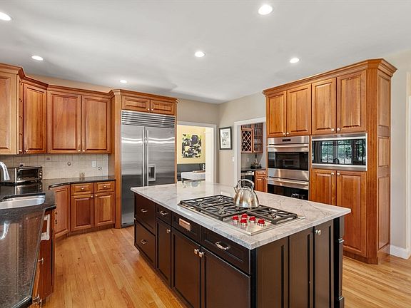 Meticulously crafted colonial in sought-after South Sudbury with manicured 1.61-acre lot on private drive. The beautiful layout features an impressive kitchen w/ eating area, island & access to expansive back patio with firepit and hot tub. Kitchen opens to a 2-story sunlit family room w/ fireplace, built-ins & oversized windows. Walk through bar to dining room w/ wainscoting, dental molding & ceiling detail + access to wrap-around porch. Living room, warm wood office and mudroom complete the 1st floor. The grand stair case in foyer leads to expansive 2nd & 3rd fl. Primary suite includes sitting area, walk-in closet, en-suite bathroom w/ jacuzzi tub. 2 generously sized bedrooms, plus oversized bedroom /bonus room and shared bath finish this level. 3rd floor has private additional bedroom, full bath and walk in storage closet. LL includes gym, family room w/ fireplace, playroom, wine room, wet bar & full bath plus storage area.