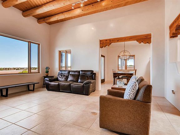 Beautiful views define this lovely three bedroom, 2 bath home. Newly remodeled kitchen, diamond plaster walls, great separation of bedrooms. The views are full Sangre de Cristo and Jemez, with a walled front and back yard for pets. Truly a jewel.