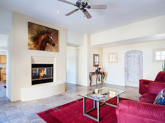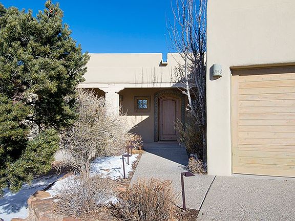 Soft contemporary pueblo style home and guest home. One of the few properties in the area allowing for horses. This extra deep lot abuts to a greenbelt and pedestrian trail. Tucked away giving maximum privacy and serenity. Mature landscaping, portal with built-in grill and fireplace. Three car garage and heated storage closet. Some Sangre de Cristo views and Jemez views. Radiant heat and evaporative cooling throughout.