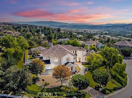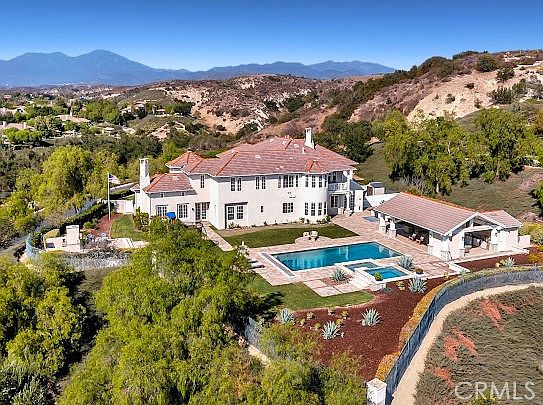 9 Raeburn, a secluded, 1.12 acre private pool estate on a single loaded cul-de-sac, luxury resort-style living at it’s finest in South Coto De Caza's tract of Atherton, a coveted European inspired neighborhood. Breathtaking endless sunset views from the back and Saddleback Mountain from the front, this elegant estate features 5 bedrooms, (one en-suite downstairs), 4.5 Baths, a large bonus room, 10 car driveway & a 5 car garage. A leaded glass front door and cathedral ceilings greet you as you walk into the formal foyer leading you into the main floor office / library with extensive built-ins. The formal living room has 2 story ceilings with a large fireplace overlooking the backyard. The great room encompasses the family room with beautiful wood built-ins plus an extra family room/ flex space. The gourmet kitchen has beautiful granite countertops, an over-sized center island with seating for 8, top-of-the-line stainless steel appliances, a large walk-in pantry and a pass through leading to the formal dining room. Downstairs is an en-suite bedroom, a powder room plus an over-sized laundry room with 2 separate hookups for 2 washers/dryers + storage. The 5 car garage has ample storage with both ceiling and floor cabinets plus a small shed on the side. The second level hosts a spacious owner’s retreat complete with a sitting area tucked into the side of the room, a cozy fireplace and a balcony to enjoy those beautiful sunset views. The owner’s suite has a separate soaking tub, an extra-large walk-in shower plus 2 walk-in closets with fabulous built-ins. Down the hall are 3 sizeable en-suite bedrooms plus a large bonus room / media room with an attached balcony with stunning views of Coto Valley and Saddleback Mountain. The backyard is your own massive, private resort with a new 600 sq ft outdoor living, entertaining covered pavilion with an entertaining bar including a refrigerator, sink, BBQ area, surround sound, a giant TV and 2 fireplaces, one changing colors for ambiance & completing the backyard is an outdoor bathroom with a personal sauna. Take a swim in the new salt-water pool with a water cascade feature, an electric cover and a large sparkling jacuzzi. Owners have installed snake and critter prevention surrounding the backyard. Coto is a 24-hour guard gated community featuring horse trails, walking, jogging & biking trails, dog parks, horse stables plus enjoy private memberships to the prestigious Coto De Caza Golf & Racquet Club & Coto Valley Club.