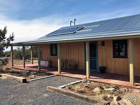 This is the off grid property you've been searching for. Newly built in 2016 and many improvements made by the sellers. Upgraded 1200 watt solar system with the new batteries installed. 2000 sq. feet of rain catchment from roof into the 1,800 gallon holding system, with UV and water filters. Not too far off the highway, but far enough to hear only the sounds of nature. There are also recent improvements on the road. The home has a very smart design and has a covered porch that wraps around the entire house. Pick a shady spot and enjoy these phenomenal views.
