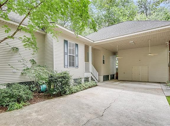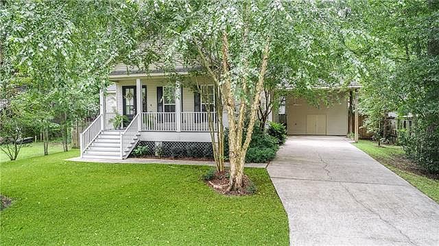 Sit on the front porch of this beautiful 4 bed 2 bath raised home. Open floorplan. Kitchen has stainless steel appliances with granite tile countertops. Master bath has double vanities, large jetted tub and seperate shower. Fenced yard. 2 car Covered parking with storage. A spectacular value within Riverwood East Subdivision and the highly sought-after Mandeville school district!