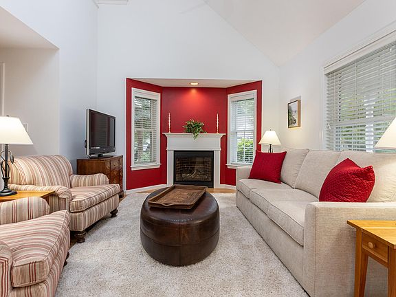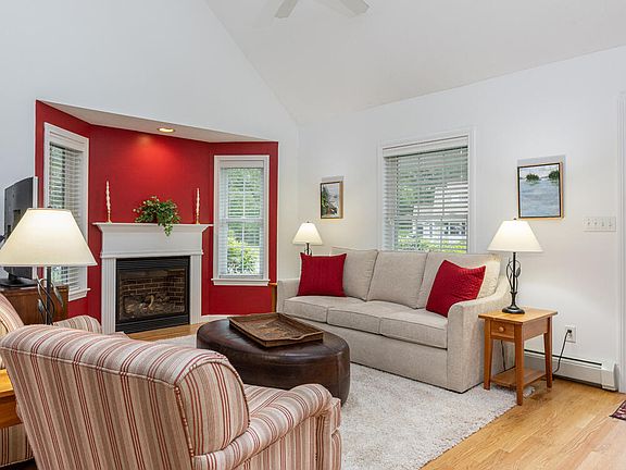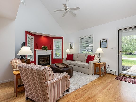 A fantastic end-unit condo that allows for easy living close to the village, is now available! This sun-filled 3 bedroom, 3 bath condo offers 1,800 square feet of open, single floor living with room for guests upstairs. Cathedral ceilings with skylights and a 4-season sunroom add to the feeling of easy breezy living. Freshly painted, hardwood floors throughout, a cozy gas fireplace, a front porch and a back patio are just some of the amenities you will enjoy in this friendly and social 55+ community. Add in a 1-car garage, being so close to the village, and yardwork provided by the association, and you have the ideal place to call home.