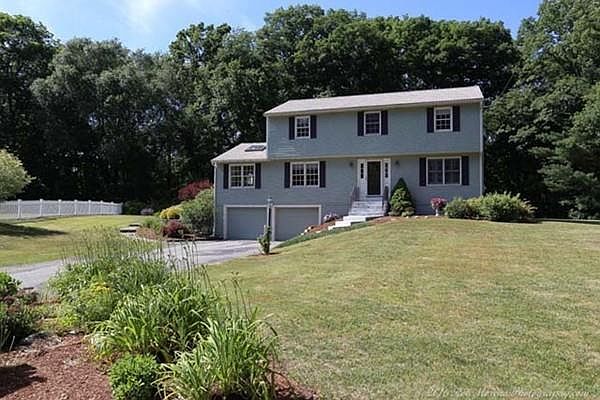 Well cared for colonial located on a quiet cul de sac in High Plain/Wood Hill school district with great access to Rtes 495 and 93. Large spacious back yard. New neutral flooring in foyer and eat-in kitchen. Family room with hardwood floors, wood burning fireplace, built ins and bay window is open to kitchen, great for entertaining. Dining room with new hardwood flooring and chair rail. Front-to-back living room. Upstairs there are four bedrooms with wood floors. Updated main bath. Master bedroom has private 3/4 bath and walk in closet. Full basement for storage. Two car garage. Gas heat and cooking. You will love the convenience of this cul de sac location.