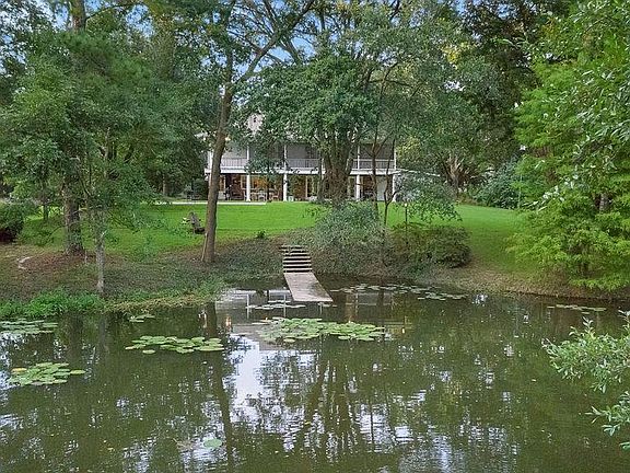 Timeless Acadian nestled on over an acre along the banks of deep navigable water w/breathtaking views & lush landscaping. Natural light is the key feature of this home streaming through the many porches & doors. Built w/exquisite detail including: hardwood floors, designer lighting, beautiful windows & private study. Gourmet kitchen is appointed w/Calcutta countertops, Sub-Zero refrigerator & top of the line appliances.Grounds are impeccably maintained w/mature Oaks, sprinkler system & private boat dock.