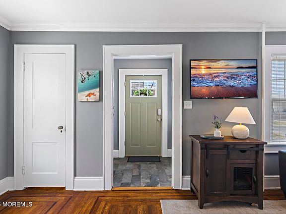 Welcome to this charming home with tons of character in the heart of Oceanport. Upon entry, you'll find beautifully maintained hardwood floors with intricate inlay designs, custom built-ins, and a cozy wood-burning fireplace. The inviting kitchen boasts an oversized pantry for ample storage, while the adjacent dining room features sliding doors that lead to a spacious deck and patio, perfect for outdoor entertaining in the fenced-in backyard. Upstairs, you'll find three well-appointed bedrooms, plus a finished loft with its own split system for heating and cooling—ideal for a playroom, office, or guest retreat. The basement offers excellent storage and a dedicated laundry area. An exterior side door leading to the kitchen provides easy access to the driveway— perfect for unloading groceries right into the kitchen. Updates include newer roof and 2 year old water heater. Located in the desirable town of Oceanport, this home is just minutes from local shops, dining, the exciting redevelopment of Fort Monmouth, and stunning beaches. With easy access to major transportation, commuting is effortless while still enjoying the charm of coastal living.