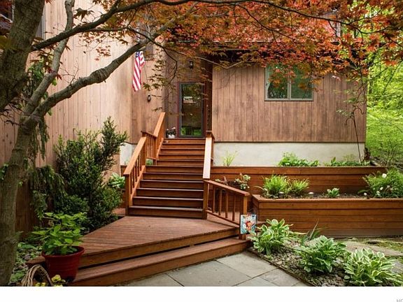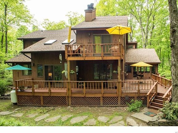 Nature's Dream home! Yes the roaring brook runs along side this perfectly positioned contemporary-styled home, where wrap around decks and verandas let you feel and hear the sounds of all year long stream side living. Plus a bonus three-season room for bug-free enjoyment. From gorgeous new granite kitchen with state of the art appliances to updated baths and roof. There's also a wet bar attached to the entertainment room & connects with the screened porch which is great for entertaining. Two bedrooms on your main level with full walk in shower and two master bedrooms on the second level each with private baths, one even has a private sauna! The stone fireplace surrounds a vaulted family room with skylights, home has 3 fireplace's, catwalk between upstairs bedrooms, loads of room in lower level for hobbyist plus electronic Dog fences. Plenty of privacy! Only 6 min to the train station to NYC.