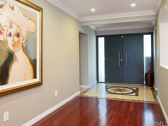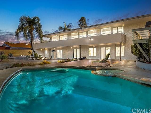 Perched atop Rockinghorse is this sprawling 4,100 sq ft home that overlooks LA's downtown high rises, mountain range peaks, and city lights landscape. The manicured entrance and rolling driveway opens up to an impressive compass foyer and entertaining area that is draped in a glass atrium that beckons beacons of organic light. The main level is lined with cherry hardwood finishes, rising stone fireplace, travertine kitchen, salt and pepper counters, and wrap around viewing deck above a gently cascading canyon. The living area has an art deco motif that starts in the arches, continues in the light fixtures, is amplified by natural light, and finished with a Los Angeles city view backdrop. The master retreat is anchored by the views and breathes in the natural light from the room to the bathroom where there is his and her sinks, walk in shower, and soaking tub. The other level houses additional bedrooms and living area with quaint stone finishes, properly placed windows, rooms, lavatories, storage rooms, and views just beyond. The backyard enjoys a spa jacuzzi, pool, lush pepper tree surroundings, drought resistant greenery, and front grassy knoll perfect to roll around in. Incredible curb appeal, peaceful city lights at night, unique greco layouts, ample space, rooms, island, viewing deck, and nestled in the heart of Palos Verdes East canyon corridor with tremendous drivable access yet leagues away from the hustle and bustle.