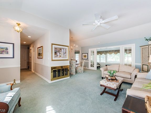 Easy living! This stunning expanded ranch is amazingly larger than it appears and offers an incredible amount of living and entertaining space. The main level features a gracious open living room and dining area with high ceilings. The chic eat in kitchen is enhanced with beautiful sliding glass doors to a private deck. Adjacent to the living room is the family room with large windows overlooking the serene private level backyard and built-in gunite pool. Next to the family room is the laundry room with easy access to the built-in garage. Retreat to the huge romantic primary suite with 4 closets and oversized en suite. This exceptional primary suite features a beautiful fireplace flanked by charming floor to ceiling windows and French doors to the private deck, the perfect place for your morning coffee. In addition, on the main level are two more very spacious bedrooms, full bath, and plenty of closets. The finished basement includes a sitting room, powder room, storage room & an enormous home office or 4th bedroom with an outside entrance. Conveniently located on the border of Essex Fells near the center of town, close to restaurants, shopping & major highways. Added bonus are the low taxes! Fireplace being sold as is, no known issues.
