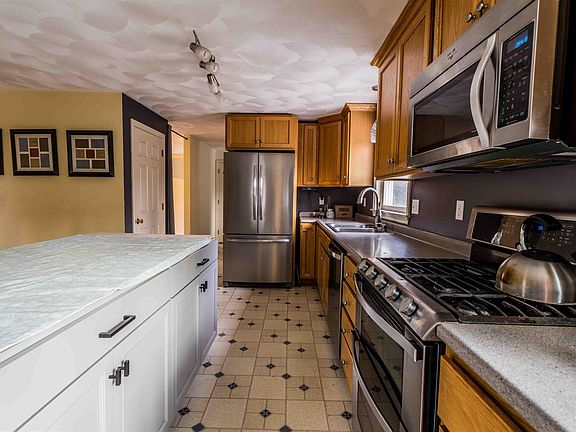 Meet the house that actually fits real life. Tucked on a quiet cul-de-sac on 3.62 wooded acres, this home gives you room to wander, explore the woods, walk the dog and simply breathe. The oversized kitchen was built for gathering, anchored by a massive island that’s ready for your choice of countertop so you can finish the look your way. Open sight lines from kitchen to dining to living room make every day, whether weeknight dinner or holiday crowd, feel easy and connected. First-floor laundry adds everyday practicality. Need extra space? The finished third-floor walkup flexes with your life: craft room, workout space, home office, small business hub, or hangout zone. The spacious front-to-back main bedroom includes a walk-in closet. Practical updates are already checked off: roof, heating system, well pump and indirect water heater are all about three years old. Outside, relax on the newer composite deck overlooking the trees and private backyard. It is a friendly cul-de-sac setting with an expansive yard to walk and explore. All of this, just minutes to grocery stores, Wal-Mart and Lowe's, and roughly a half hour to both Portsmouth and Manchester. The big projects are done; come add your style and make it yours. Agents please see non-public remarks.