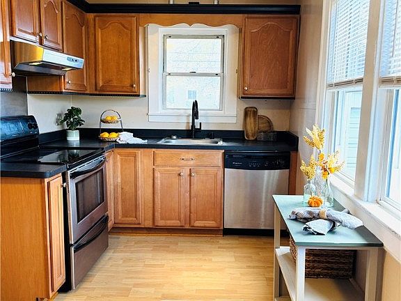 Located on a quiet side street, this well-maintained home offers three bedrooms and two full baths. Features include beautiful hardwood floors, a newer kitchen, updated windows, and two recently renovated bathrooms. Enjoy a glass of wine or coffee on the quaint porch. Explore the nearby walking and biking trails with convenient access to Irondequoit Bay and Seabreeze Park. A room off the kitchen offers a space for an office or a play area for the kids. The roof was replaced in 2021. negotiations until 10/14/25 at Noon. Open House Sunday, Oct. 12th, 1 PM-2:30 PM