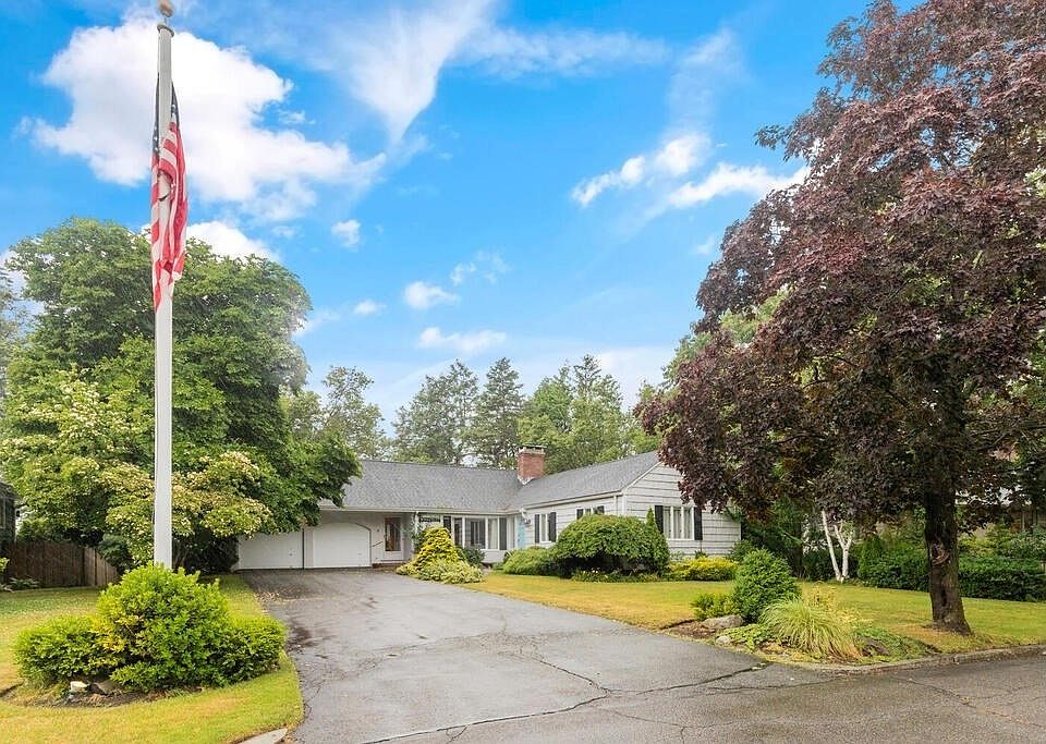 “Windswept” Iconic Custom Ranch in the circle of Russett Lane!! Rare opportunity here to own a perfect Ranch home. Featuring two fireplaces, formal dining room, lovely kitchen with a triple Anderson window overlooking the rear yard, double French doors to a 1st floor den that has access to a private deck with overlooking a Koi Pond, Master suite, two additional bedrooms, Central Air, 2 car attached garage with electric eye door openers, 2 water meters, irrigation system and 200 amp CB panel. With a few touches this home will shine!! Extensive perennial plantings throughout!!