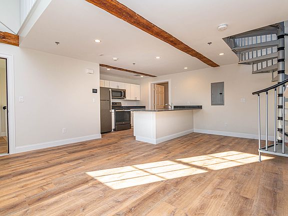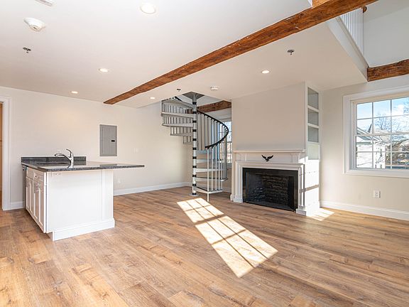 This unit features a separate entrance that includes the handrails in the hallway from the original building leading up to a top floor 1 bedroom front facing loft style apartment. It's features include washer and dryer in unit, granite counter tops, pet friendly, Central A/C and heating, Stainless steel appliances, life proof hardwood flooring throughout, staircase to the bedroom, original wood beams, natural lighting, and decorative fireplace.