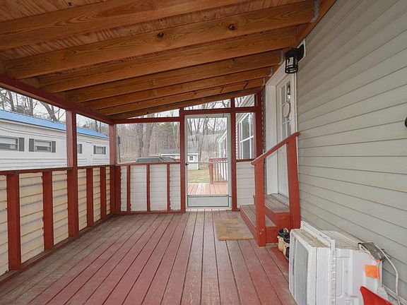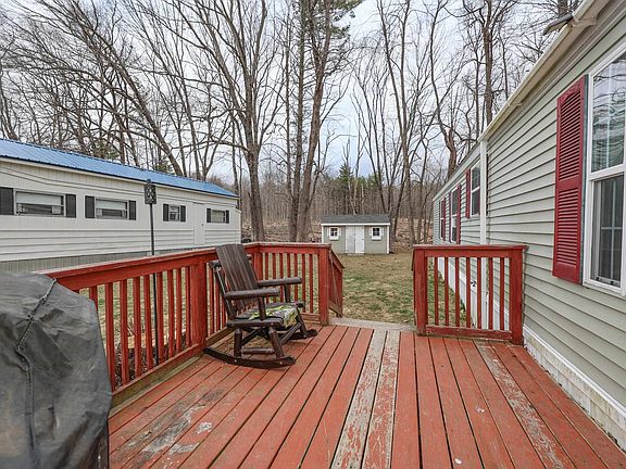 In the heart of Gilford located in the wonderful 55+ community of Lake Breeze Mobile Home Park you will find this lovely well cared for manufactured home nestled up on a hill with mature landscaping all around. As you enter step inside a spacious enclosed porch with an adjoining deck, both perfect for relaxing. Opening the front door, you are welcomed by a bright, open concept living/kitchen area with tons of storage. Recently painted with new flooring, this 2 bed/2 bath is move in ready! A large primary bedroom with en-suite and walk in closet offers a secluded, calming retreat. The secondary bedroom is a multi-purpose room, use it for an office/exercise room/library or combine all, it is spacious enough. Conveniently located close to shopping, restaurants, minutes to Gunstock Mountain Resort and Gilford Town Beach on Winnipesaukee.