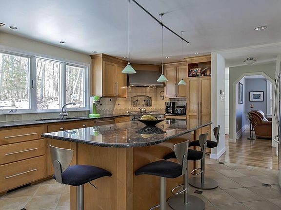 Amazing opportunity to own this beautifully updated colonial complete with an open concept family room/gourmet kitchen. Set at the 'no outlet' end of the street this home offers both privacy and a neighborhood. Mahogany deck surrounded by mature plantings is the perfect outdoor getaway...at home. Entertaining is easy in the fireplaced family room with cathedral ceiling, inlaid wood floor, surround sound, recessed lights, skylight, custom moldings as well as front French doors and rear sliders to the deck. Gourmet kitchen includes 6 burner DCS industrial stove with hood and convection oven, granite counters, custom maple cabinetry, over-sized seated island, custom tile, pantry and plenty of light. Wood floors, recessed lighting and custom moldings are evident throughout the house. Master bath recently 100% updated including solid mahogany vanity with vessel sink, dual head, barn style glass shower. Sprinklers, A/C, storage shed, finished basement with fireplace and much more!