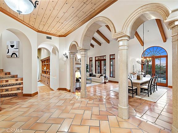 Poised in the prestigious guard gated Pelican Ridge Estates community of Newport Coast is a gorgeous, custom Spanish style estate that boasts an astonishing panoramic view. The design of the estate exudes luxury as you are greeted by beautiful decorative columns in the grand foyer. Residing on the main level is the formal living room equipped with fireplace, family room with soaring high ceilings, and gourmet kitchen, complete with elegant wood cabinetry and center island. Completing the main level is a home office and downstairs bedroom for added convenience. Above the grand spiral staircase is the upper level of the home which boasts the luxurious master suite which also overlooks the exceptional view. Walkway that towers over the downstairs living area leads into the remainder of the upper level. Two upper level bedrooms are behind double doors and share a spacious loft. Rear of the home creates a resort like feel as palm trees stand firmly by the lavish pool. Additional highlights include amazing floor plan, laundry room, three car garage, spacious driveway, and many more. Conveniently located close to the Pelican Hill Resort Hotel and Golf Course, this estate allows perfectly for the Newport lifestyle. This estate brings in a resort like comfort, all whilst boasting an old world charm.