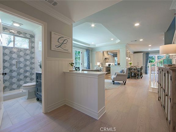 Ladera Ranch is one of the most sought-after residential communities in Southern California featuring award-winning public schools, parks and extensive recreational amenities amidst hundreds of acres of meticulous landscaping. This gorgeous Traditional cul-de-sac home, settled on a private, elevated corner parcel in the coveted Sterling Glen tract has been redefined and is your key to this unparalleled lifestyle. At approximately 3,100 square feet, this 5 bedroom 3 bath floorplan includes a main-floor bedroom and full bath, versatile upstairs bonus room, long driveway, garage parking for three cars and a bespoke kitchen and three reimagined bathrooms drawn from the pages of Architectural Digest. La Cantina style tri-fold doors open from the kitchen/dining area to an elevated backyard hosting an outdoor wrap-around BBQ island, large covered paverstone patio, outdoor speakers, patio heaters, four-hole putting green and warm conversation around the fire-pit.