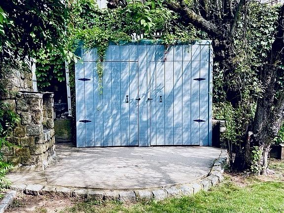 Gas cobblestone fireplaceLandscaped yardWood stoveModern styleWalk-in showerHeated two-car garageQuiet street
