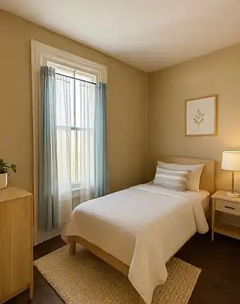 Tall ceilingsLarge windowsUpdated bathroomLaminate flooringRadiator heatLarge shared yardCentury home character