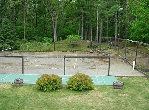 This home is a private oasis, a serene hideaway only a few minutes from route 111. Situated in a pleasantly secluded neighborhood with many mature trees that offer shade even on the warmest of days. The yard offers a tennis court, shuffleboard, two large sheds and a large, detached screen house for your outdoor entertainment. Lower level is finished with two large rooms and a full bathroom. Gleaming hardwood floors and inviting brick hearth with fireplace insert accent the living room. Driveway is level and long enough to fit multiple vehicles. Lots of closets space. Great price, great house