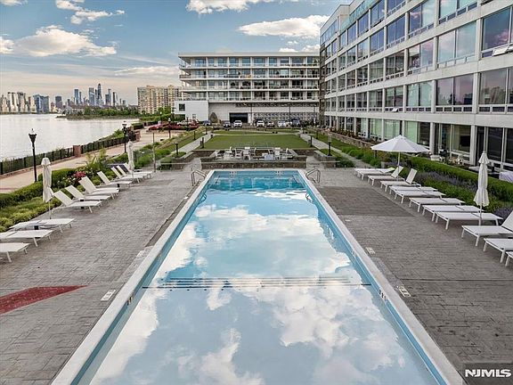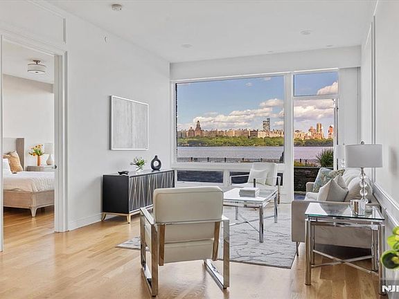 This is a RARE, UNIQUE find! Explore the VIRTUAL TOUR! Differentiators: ~1,467 sqft with UNOBSTRUCTED waterfront view, large terrace, 2 assigned parking spots, 3 bus routes ( (158, 159R, 156R) to Port Authority, 10 minutes building shuttle to light rail and ferry. Welcome to The Pearl, Edgewater's premier luxury building. Enjoy an expansive living space bathed in natural light from floor-to-ceiling windows, perfectly framing your private, unobstructed Manhattan skyline view. The huge private balcony extends your living area, ideal for dining or simply soaking in the vistas. The gourmet kitchen boasts high-end Bosch appliances, sleek Caesarstone countertops, and custom cabinetry. Residents of The Pearl enjoy unparalleled amenities: a fitness center, outdoor pool, resident lounge, skyline rooftop, and 24/7 concierge. Commuting is a breeze with The Pearl's shuttle to the NY Waterway Ferry (8 min to Midtown), plus easy access to three bus routes (158, 159R, 156R) to Port Authority and Hudson Bergen Light Rail. This highly sought-after unit includes two assigned parking spots. Edgewater thrives with everyday conveniences like Whole Foods, Trader Joe's, and Mitsuwa, plus diverse dining. Its proximity to Fort Lee expands shopping and culinary options even further. Don't miss this extraordinary chance for luxury, convenience, and an awe-inspiring view!