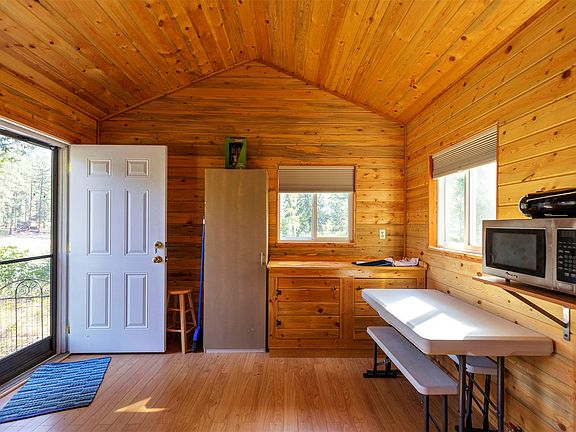 Perched above the banks of the Clark Fork River, lies a charming one-room dry cabin. This secluded retreat offers a serene getaway. Enjoy sitting on the deck watching the river flow by or head down to the river for fishing or floating. Nestled amongst a small forest of trees, this hidden gem ensures privacy and peace. Though off-grid, it promises comfort with essential amenities an adjacent building houses a porta-potty bathroom for convenience.