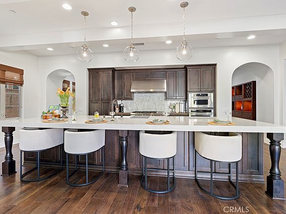 Nestled in the exclusive gated community of The Groves at Orchard Hills, this beautiful HOME boasts 6 bedrooms, 5 bathrooms, totaling 4,209 sqft. of living space. Revel in opulent architecture and functional layout, with 2 bedrooms on the first level and 4 more bedrooms upstairs in addition to a laundry room. Step into the spacious and exquisitely royal primary bedroom including an entirely custom built island within a custom walk-in closet, and en suite office space with custom built-in shelves for ample storage. Step into the regal primary bathroom, featuring a generous bathtub, a separate oversized shower, while double sinks offer convenience. This highly upgraded en suite promises a haven of comfort and elegance, ensuring every day takes place in unparalleled luxury. Through the front door hallway, past the formal dining room offering recessed lighting and a vaulted ceiling, into the airy great room including three separate spaces serving as the casual family room area, formal family room area, and casual dining space. The great room includes a surround sound system and custom motorized roller shades above two massive upgraded BI-FOLD doors opening up the space into the backyard standing ready for hosting by offering a covered patio over a large BBQ island table perfect for entertaining. Furthermore, the peaceful sound of water trickling down the fountain fills the space, a custom built pizza oven, and fireplace invites friendly conversation and plenty of outdoor entertaining space. Within the great room lies a massive kitchen island designed to gather around, creating the perfect setting for fun-filled gatherings with friends and family. A professional grade chef's kitchen featuring stainless steel Kitchen Aid appliances, large high-end cabinets, custom lighting, mosaic tile full backsplash, and a walk-in pantry outfitted with shelving makes this home a delight for any family and/or entertainers. The formal dining area has an elegant chandelier, recessed lighting, area for a large formal dining table, custom wine rack with built-in cabinet storage and opens through two separate arched hallways into the spacious great room. Adorned around the property is beautiful landscaping and community amenities include: swimming pools and Jacuzzi, club house, BBQ, tennis courts and parks. Renowned Orchard Hills Shopping Center and award-winning Orchard Hills School are a few minutes walk.