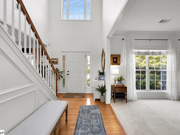 Beautifully maintained home in a superb location with award-winning schools! This spacious residence features an open floor plan filled with natural light, decorator colors, designer lighting, and intricate moldings throughout. The rooms are generously sized and offer ample storage for comfortable living. The main level boasts soaring ceilings, large windows, and versatile flex rooms that can be tailored to fit your lifestyle. The oversized primary suite is a true retreat, with double-door entry, a spacious sitting room, and plenty of space to relax or work from home. Step outside to a backyard built for entertaining—a level, fenced-in oasis featuring a huge stamped concrete patio, a charming pergola, and a terraced yard with thoughtful details. Located within walking distance of the Sugar Creek pool, and just minutes from Pelham Road, GSP Airport, I-85, shopping, and dining. The owner has lovingly maintained this home and says what she loves most is the abundance of space for family and guests alike. Don’t miss this gem in a quiet, sought-after neighborhood!