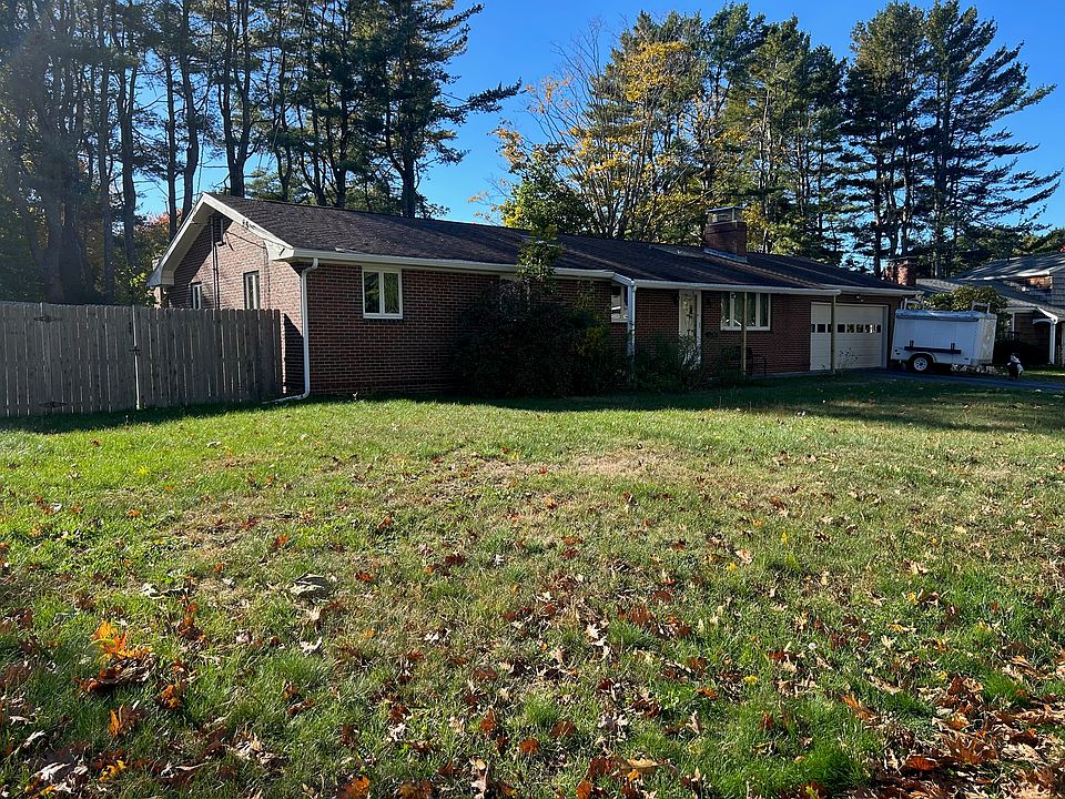 Two-car garageFenced backyardAbundant natural lightBrick ranchThree-season roomLarge basementHardwood floors