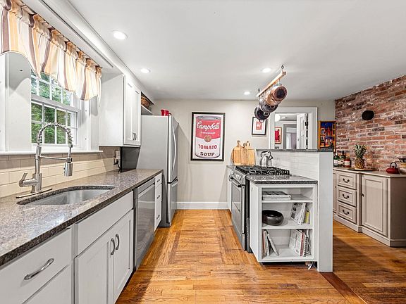 This home is truly one of a kind! A classic, custom-built cape that is a must-see. Be prepared to fall in love with the open foyer and its stunning brick floor. Charm is throughout this home especially in the well-equipped, eat-in kitchen with exposed brick and in the beautiful living room with its gas fireplace and built-in bookcases. The first floor also has two spacious bedrooms and a full bath. Set off by itself, is a front to back room used as a combo sitting and dining area but would also be an ideal office space. There is space for everyone with a very versatile floor plan. The sunken-in family room with a cozy pellet stove has tons of natural light and opens to the deck, an ideal entertaining space. The deck, framed with red and white concord grape arbor, overlooks the beautiful yard filled with mature plants and flowers. The second floor has a lovely 3rd bedroom and an additional area that could be finished as an office. The brand new oversized 2 car garage has a second floor that is just waiting to be finished with lots of windows and a slider. This wonderfully maintained home is in the center of town, very close to the library, the town hall, the School Street Café, and the elementary school as well as a quick commute to both Manchester and Concord. Septic is newer.